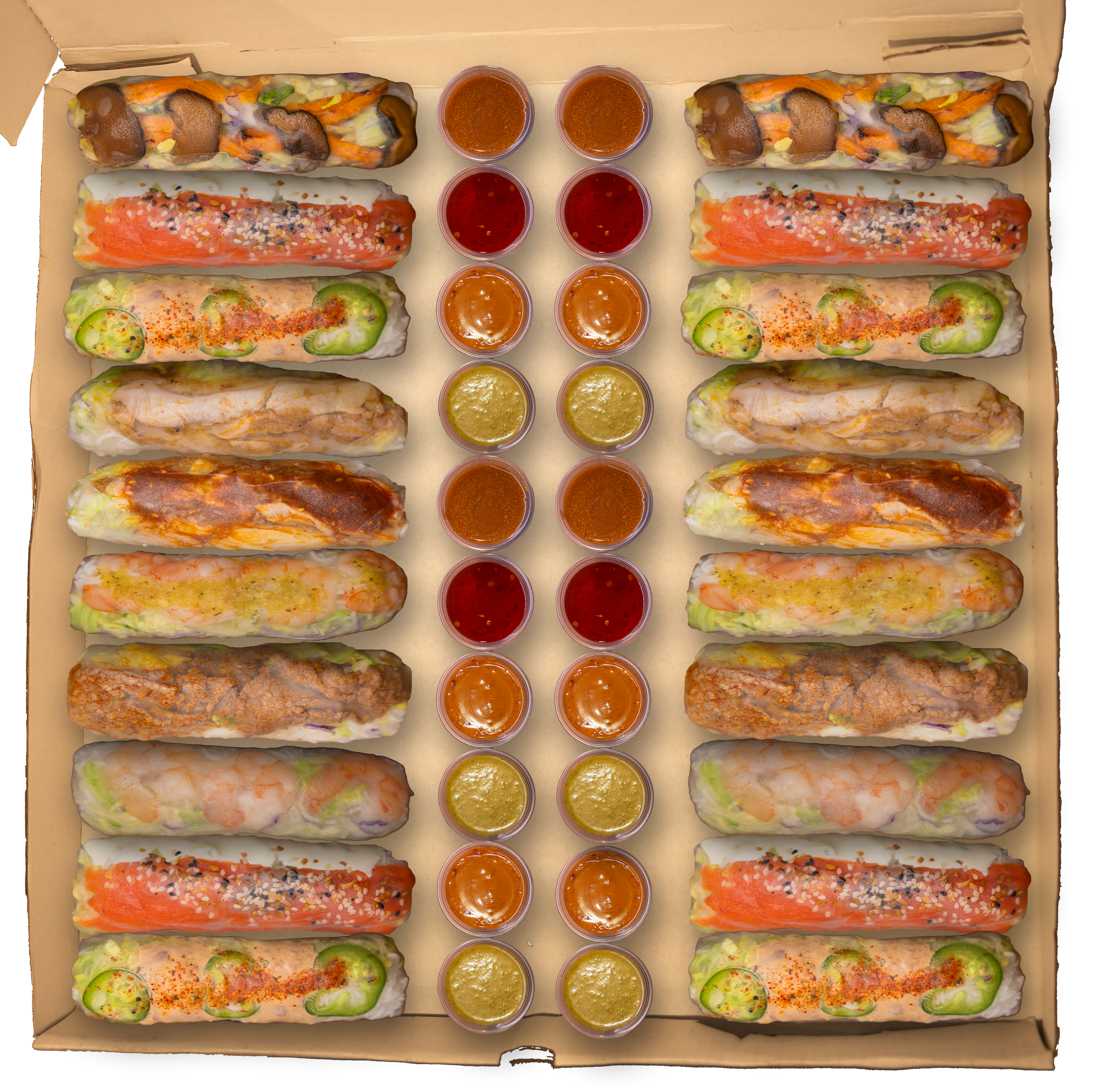 20 x Fresh Salad Rolls served with a variety of delicious sauces